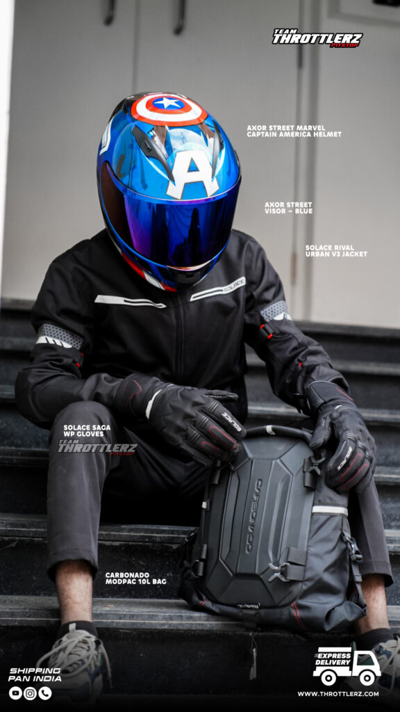 Look 94 from Team Throttlerz Pitstop is inspired by the spirit of heroes — the modern rider who stands out with confidence, tech, and top-tier protection. With a Marvel-inspired lid and street-tested gear, this look is made for those who ride like legends.